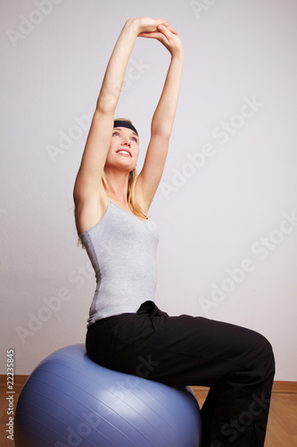 Frau trainiert mit Gymnastikball