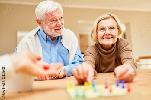 Senioren Paar spielt mit Freunden ein Brettspiel