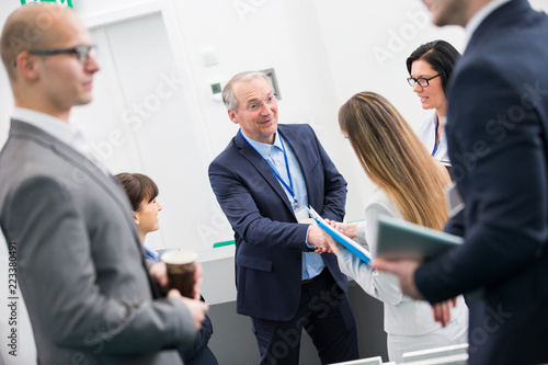 Panorama aus Silhouetten von Geschäftsleuten vor bunten Business Portraits
