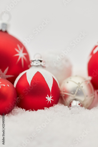 Frohe Weihnachten mit Weihnachtskugel im Schnee