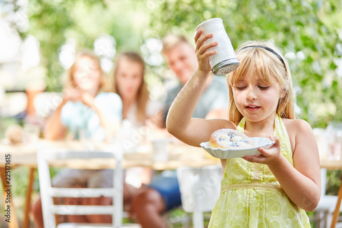 Familie zeigt bunte Zeichnung mit Eigenheim