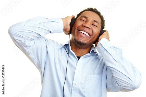 Portrait of a determined African American man in his 40s wearing a light blue shirt against a neutral background