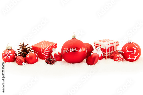 Frohe Weihnachten Grüße als Karte mit Dekoration