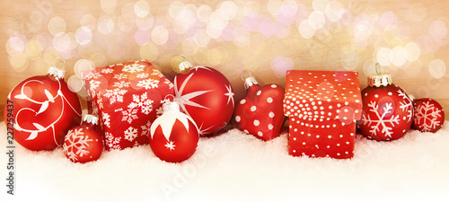 Weihnachten Panorama mit Geschenk und Christbaumkugel