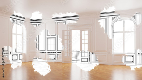 Wand im Zimmer einer leeren Wohnung mit Balkon