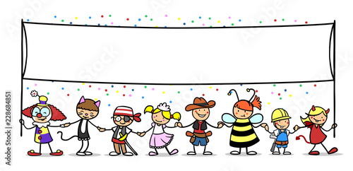 Gruppe Kinder mit leerem Banner zu Karneval