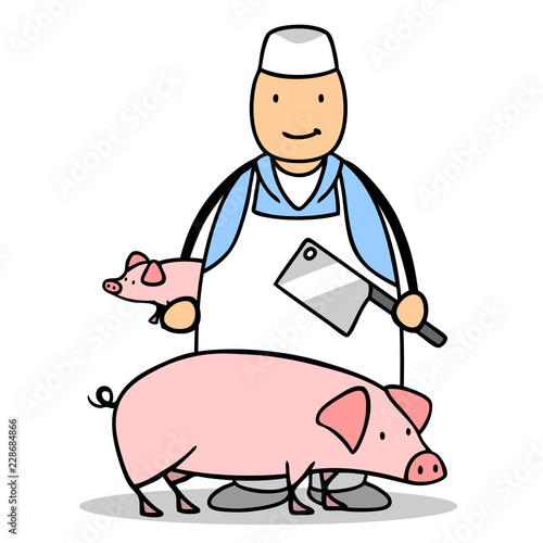 Pink cartoon pig as flat animal illustration (Generative AI)
