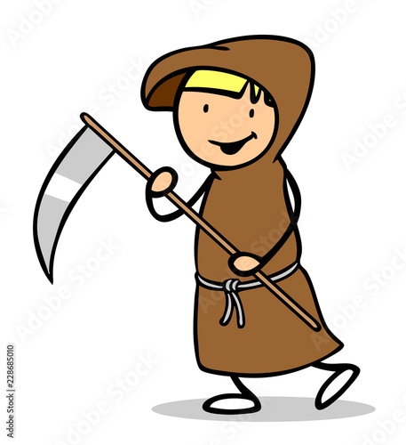 Kind zu Halloween als Gevatter Tod oder Sensenmann
