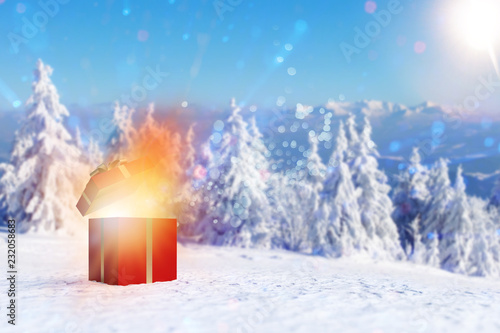 Geschenk leuchtet als Überraschung zu Weihnachten