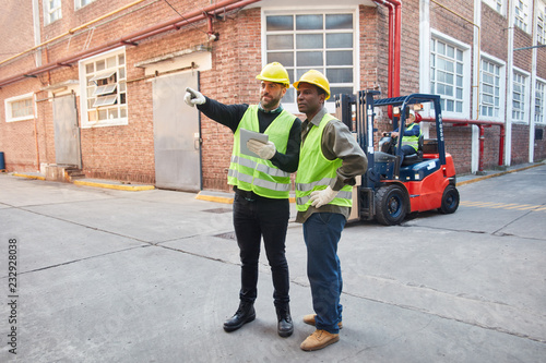 Logistik Arbeiter in einer Pause beim Smalltalk