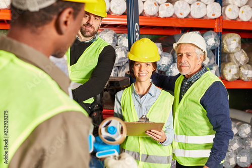 Arbeiter als Logistik Team im Warenlager
