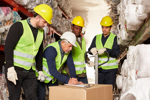 Kommissionierer im Lager mit Checkliste auf Klemmbrett