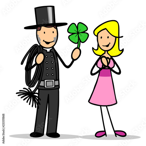 Schornsteinfeger als Glücksbote mit Kleeblatt