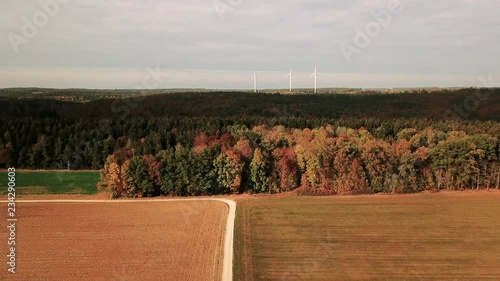 Charming blue house surrounded by autumn trees in a tranquil rural setting