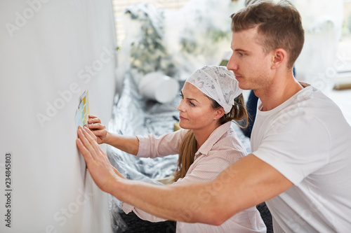 Kinder streichen Wand bei Renovierung im Eigenheim