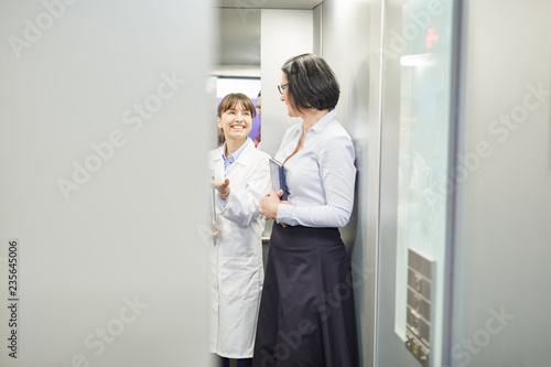 Ältere Business Frau im Gespräch mit jungem Kollegen
