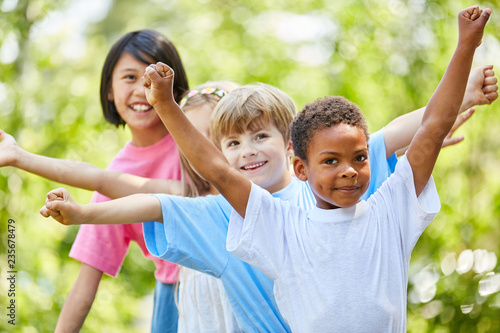 Asiatisches Mädchen jubelt mit Pokal in Händen