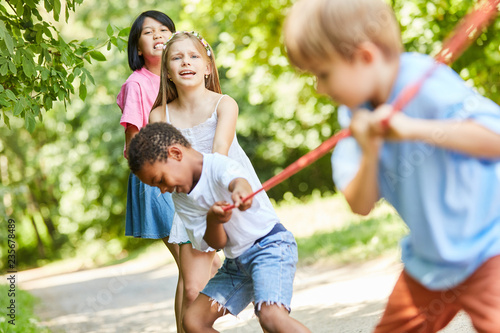 Children in tug of war as a strong team