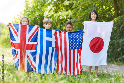 Kinder mit Nationalflaggen als Symbol der Vielfalt