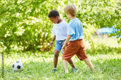 Multikulturelle Gruppe Kinder hält Weltkugel