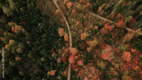 Aerial View Of Evergreen Forest With Yellow And Green Trees Top Down Forest Scenery Nature Background Woodland Landscape Coniferous Trees