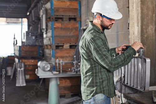 Arbeiter in der Gießerei kontrolliert Gussform