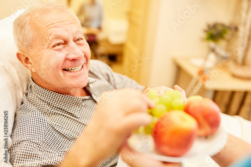 Senior bekommt frisches Obst im Altenheim