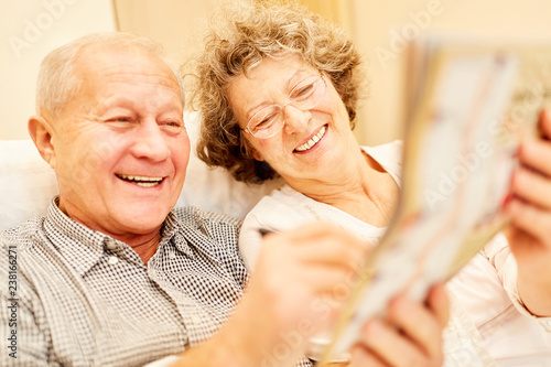 Retired senior couple sitting relaxed at home