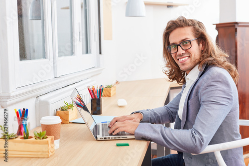Hand mit Lupe sucht in Portraits als Umfrage und Marktforschung Konzept