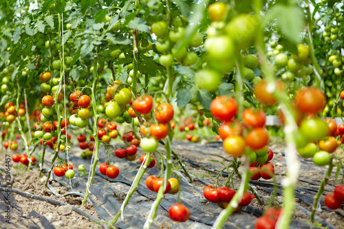 Bustling farmers market scene with fresh produce and shoppers