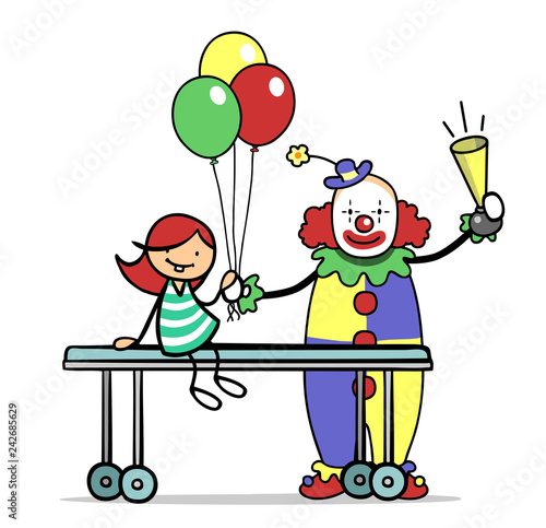 Kinder laufen hinter Clown bei Ausbildung in Clownschule