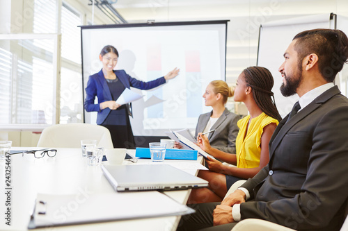 Panorama aus Silhouetten von Geschäftsleuten vor bunten Business Portraits