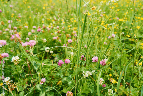 Klee und Wildblumen auf Wiese im Sommer