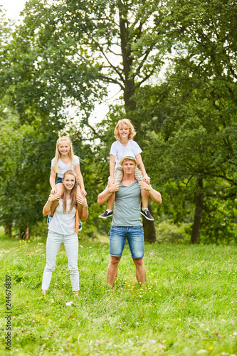 Familie zeigt bunte Zeichnung mit Eigenheim
