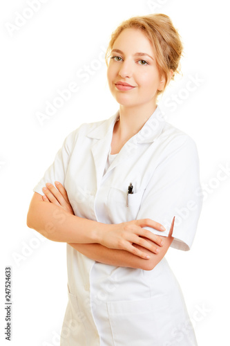 Frau im Kittel als Krankenpfleger vom Pflegedienst