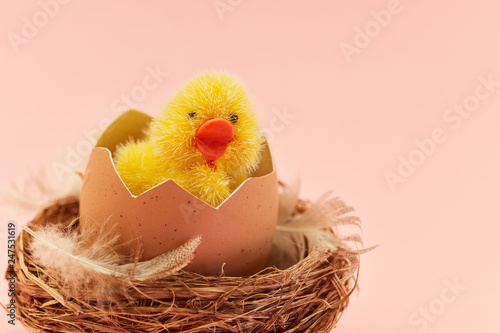 Frisch geschlüpftes Küken im Ei zu Ostern