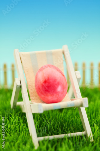 Strandstuhl im Garten als Urlaub und Ferien Konzept