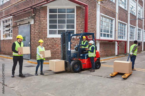 Logistik Arbeiter in einer Pause beim Smalltalk