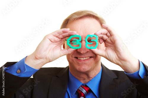 Manager schaut durch Währungssymbole