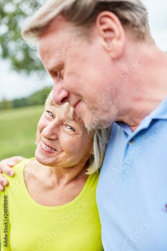 Glücklich verliebtes Senioren Paar im Park
