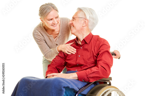 Altenpflege bei Senior Mann im Rollstuhl