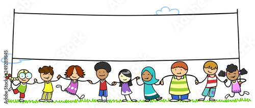 Gruppe Cartoon Kinder hängt an Leine als Trennlinie