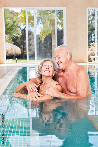 Senioren Paar umarmt sich im Pool