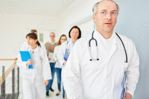 Selbstbewusstes Ärzteteam im Flur der Klinik