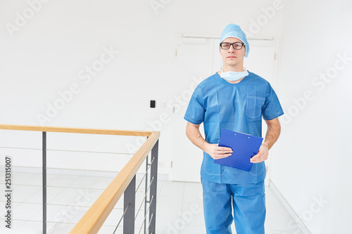 Surgeon stands in front of the operating room after disinfection