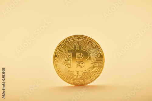 Golden Bitcoin coin get spun by hand