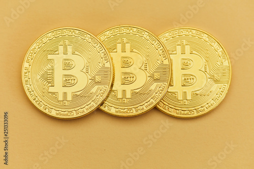 Drei Bitcoin Münzen als Internet Finanzen Konzept