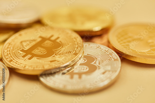 Bitcoin Münzen auf Haufen als Kryptowährung