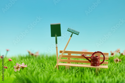 Gartenarbeit Werkzeuge im Garten im Sommer
