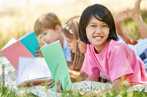 Gruppe Kinder der Grundschule beim Lesen lernen